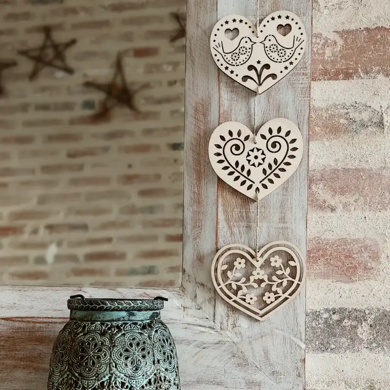 Ces cœurs décoratif et charmant, fait à la main en bois brut, apportera chaleur et charme naturel à votre intérieur.
