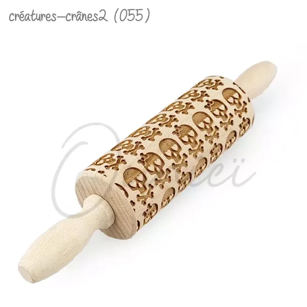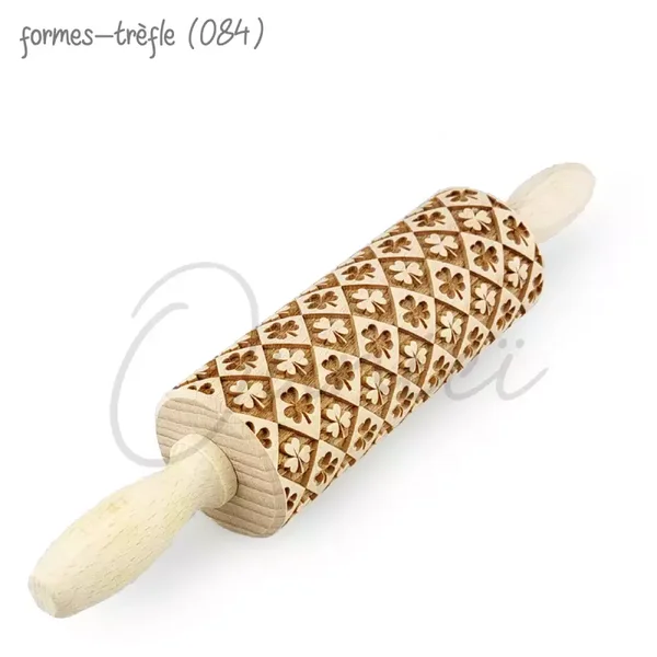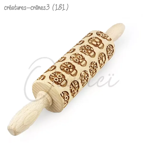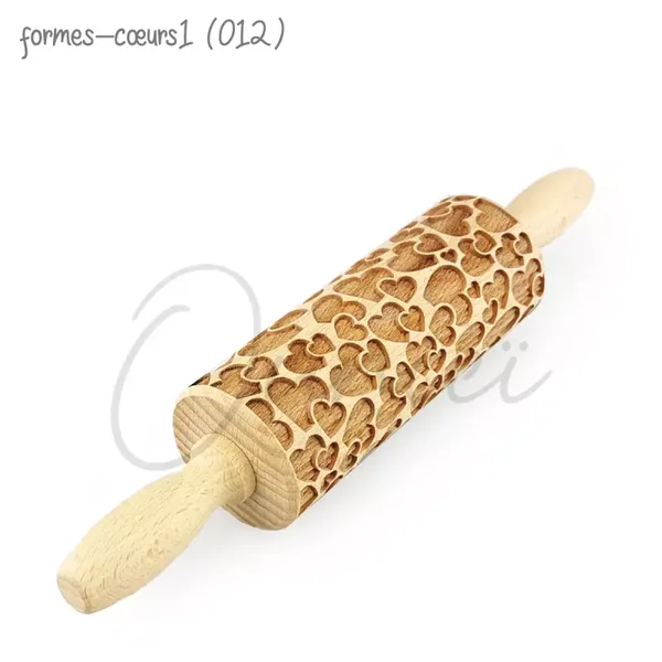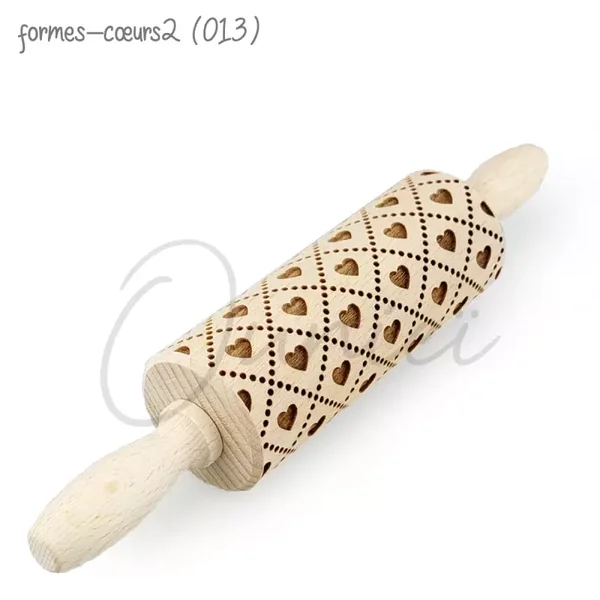 Abaisser la pâte avec un rouleau à pâtisserie lisse jusqu'à l'épaisseur désirée. La pâte doit être froide pour qu'elle ne colle pas au rouleau à pâtisserie. Passez le rouleau gravé sur la pâte en appuyant légèrement et les motifs s’imprimeront sur la pâte !
