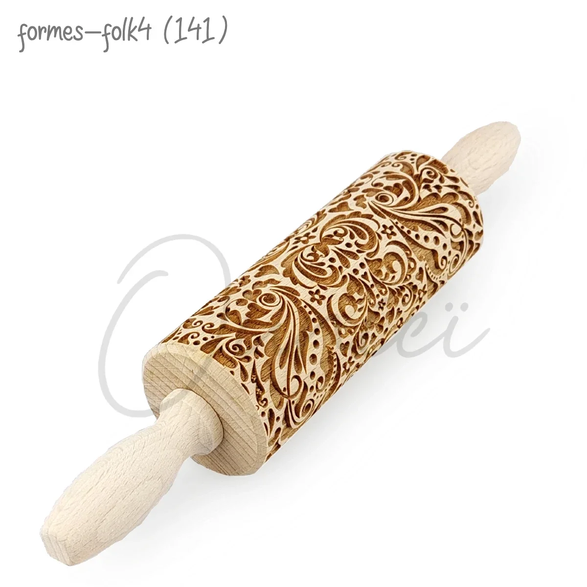 Rouleau en bois gravé à pâtisserie, poterie et céramique - motif formes / folk 4 (141)