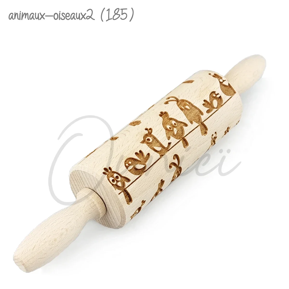 Rouleau en bois gravé à pâtisserie, poterie et céramique - motif animaux / oiseaux2 (185)