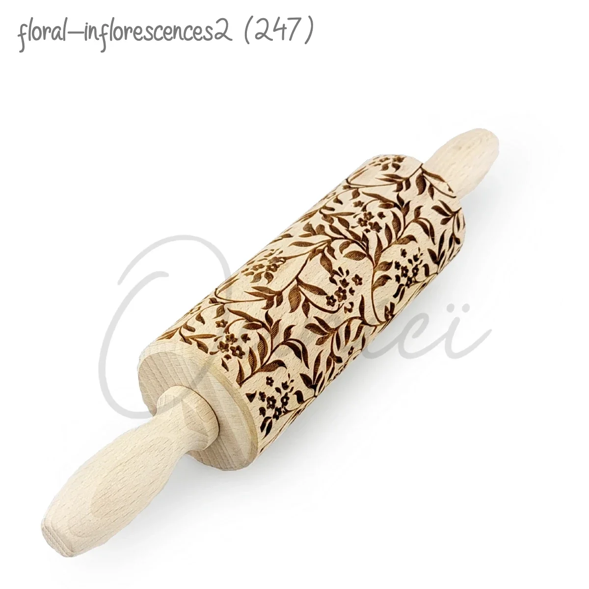 Rouleau en bois gravé à pâtisserie, poterie et céramique - motif floral / inflorescences2 (247)